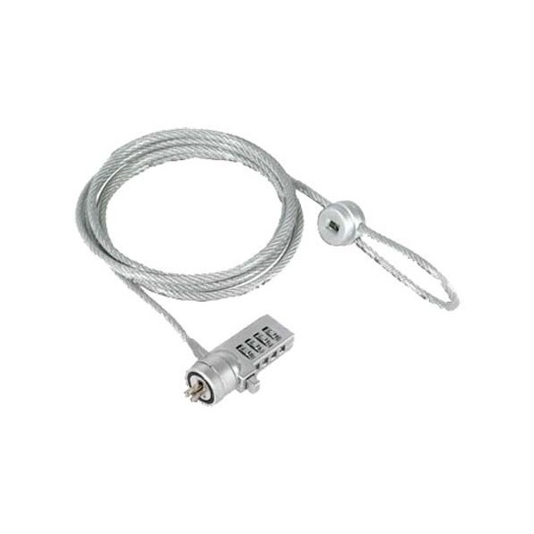 Funciona asegurando el cable a la mesa (o una estructura fija) y el candado a su equipo portatil u otro dispositivo compatible con dispositivos de seguridad (monitores LCD). Es resistente, portátil y fácil de usar. Gracias a su cable galvanizado y reforzado, junto a su cerradura con clave, usted tiene acceso a una característica de seguridad potente frente a hechos delictuales.
