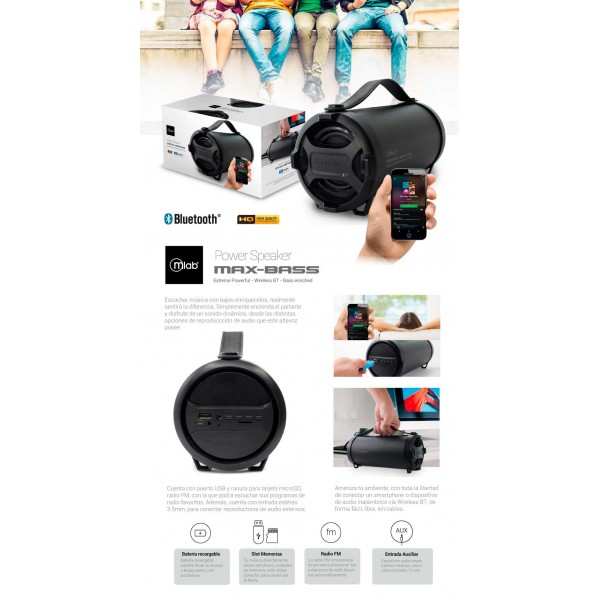 Escuchar música con bajos enriquecidos, realmente sentirá la diferencia. Simplemente encienda el parlante y disfrute de un sonido dinámico, desde las distinats opciones de reproducción de audio que este altavoz posee. Cuenta con puerto USB y ranura para tarjeta microSD, radio FM, con la que podrá escuchar sus programas de radio favoritos. Además, cuenta con entrada estéreo 3.5mm, para conectar reproductores de audio externos. Ameniza tu ambiente, con toda la libertad de conectar un smartphone o dispositivo de audio inalámbrico vía Bluetooth, de forma fácil, libre y sin cables.