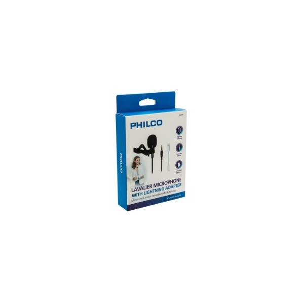 Micrófono de solapa tipo lavalier 3.5mm con adaptador lightning Philco 26PLCLA231