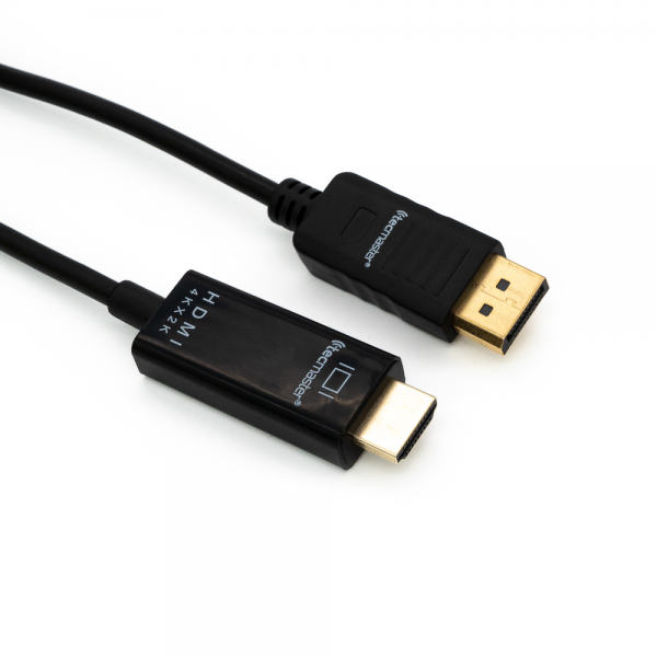 Display Port macho a cable HDMI macho, material de ABS con Núcleo de alambre de cobre puro, OD5.0. Soporta una resolución de hasta 4K@30Hz, posee una longitud de 1,8 mts. Color negro.