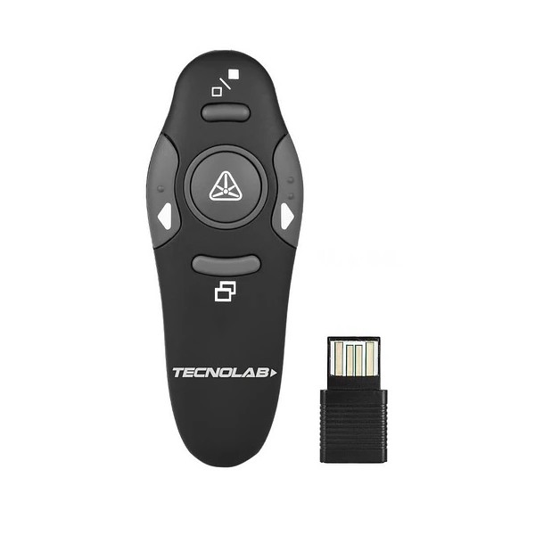 Este presentador inalámbrico de 2,4 GHz Tecnolab de color negro de presentación es pequeño, portátil y con más aplicaciones.