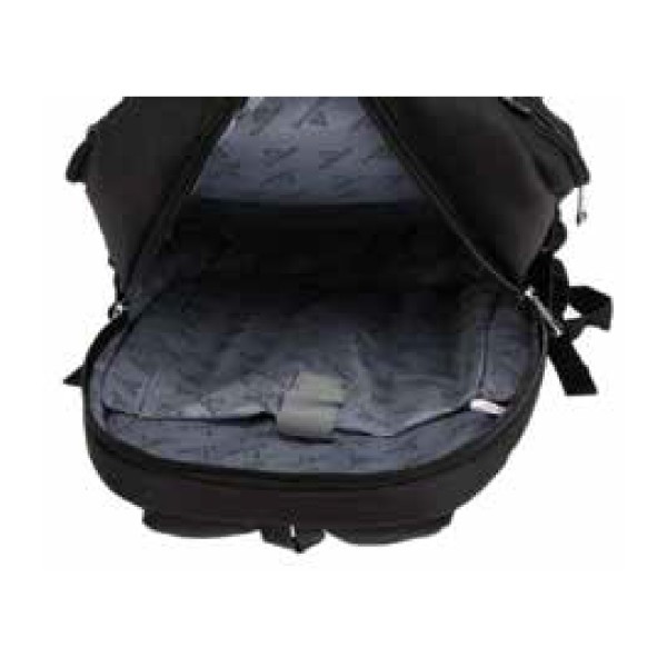 Mochila antirrobo con cierre especial que queda pegado a la espalda.