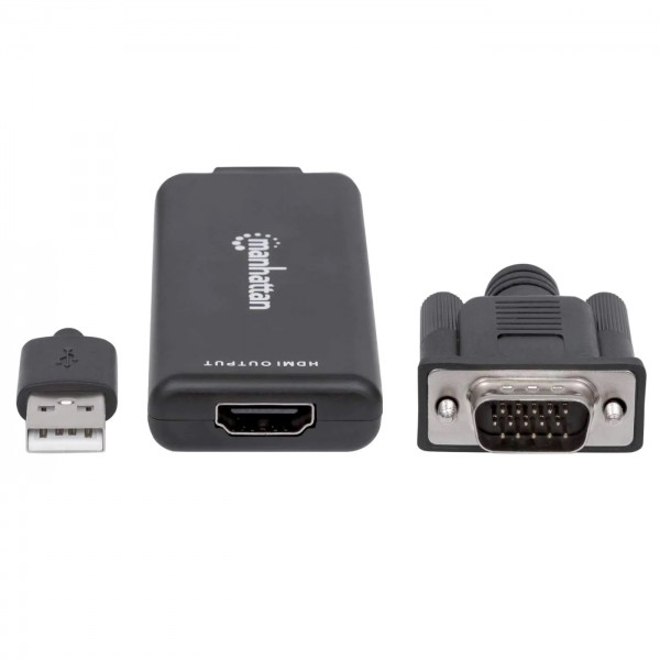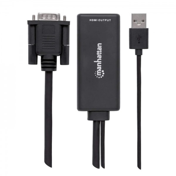 Convierte señales análogas audio/video desde una PC en señal digital HDMI.El Convertidor Manhattan VGA y USB a HDMI traduce señales análogas de audio/video de PC a formatos HDMI para proyectores, pantallas de alta definición, televisiónes y más dispositivos compatibles. Su avanzada circuitería integrada te permite disfrutar fácilmente del contenido de una PC en pantallas de alta definición o televisiones y mantén simultaneamente la recepción de audio y video en la PC. Su capacidad de ancho de banda soporta resoluciones de video de hasta 1920 x 1080 y 1080p@60Hz, permite atender propositos en capacitaciones, retail y exposiciones. Su rápida instalación Plug and Play y compatibilidad con Windows y Mac, facilitan al Convertidor de VGA y USB a HDMI entregar contenido digital almacenado en cualquier computadora de escritorio o portátil.