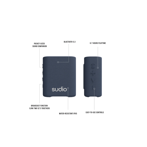 Sumérgete en la experiencia sonora definitiva con el altavoz Sudio S2 TWS Bluetooth 5.3 HIFI IPX. Este potente parlante lleva la calidad de sonido a un nivel superior, acompañándote en todos tus momentos especiales.