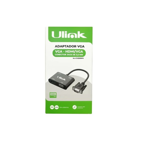 Adaptador VGA a HDMI + VGA C/Audio Ulink CV2500HV