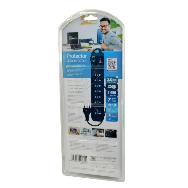 Alargador Tipo Zapatilla Con Protección de Sobrevoltaje 3Mt 1400 Joules 2500 Watts Mlab 9305